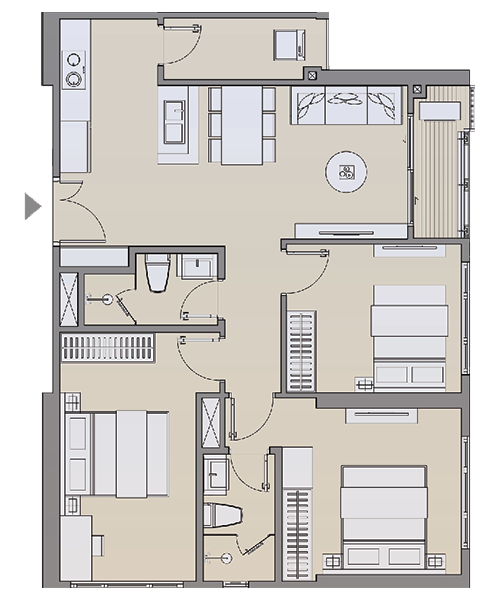 | Căn hộ 3 phòng ngủ | 73.89 – 79.58 m2 | 3.6 – 4.4 tỷ |